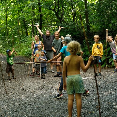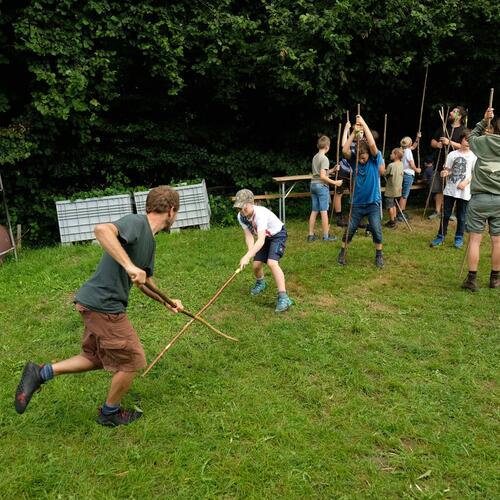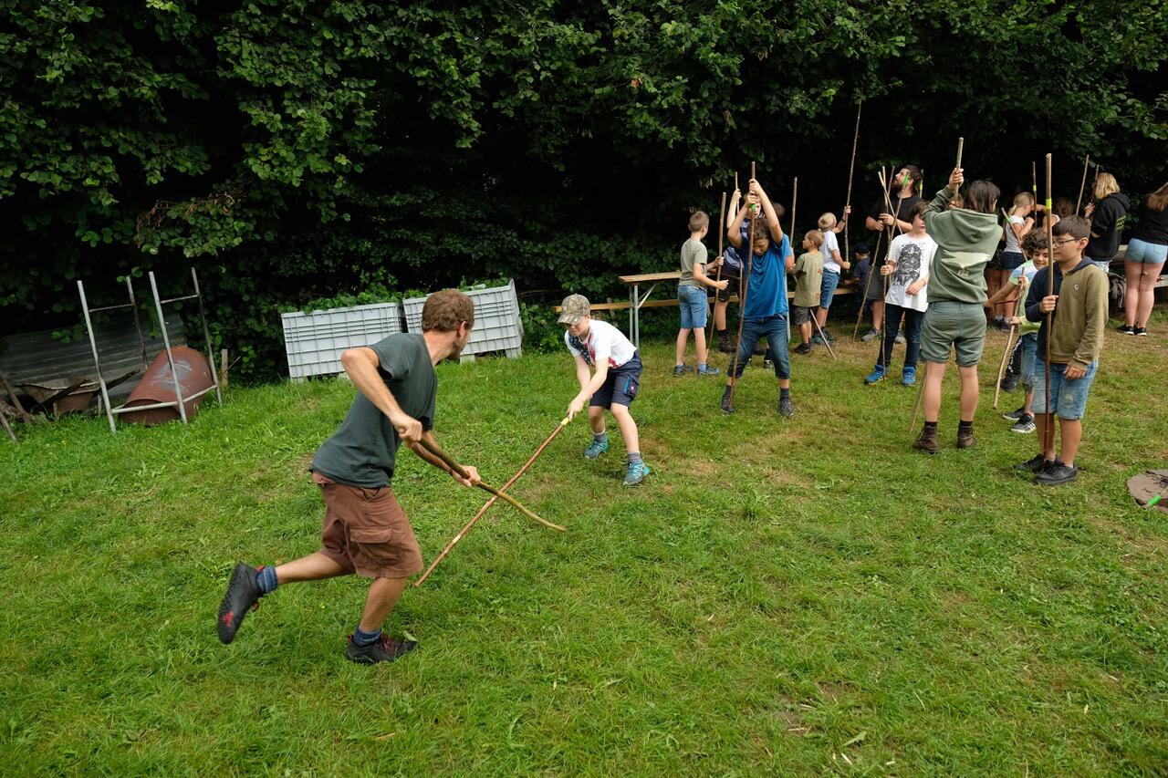Am Lagerfeuer kochen, unter freiem Himmel schlafen, ursprüngliches Handwerk erlernen, sich im Wald unsichtbar machen, Fallen bauen und jede Menge Spiele …
